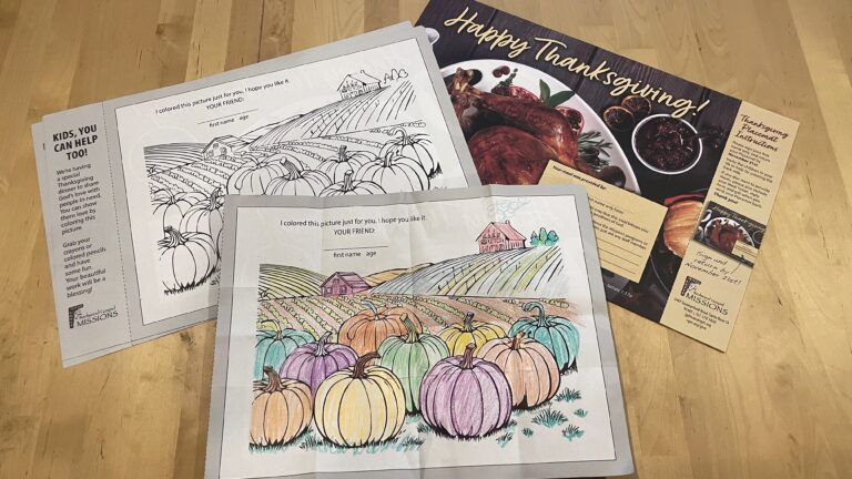 Placemats are a great way anyone can participate. These will be placed each seat in the dining hall at Great Thanksgiving Banquet.